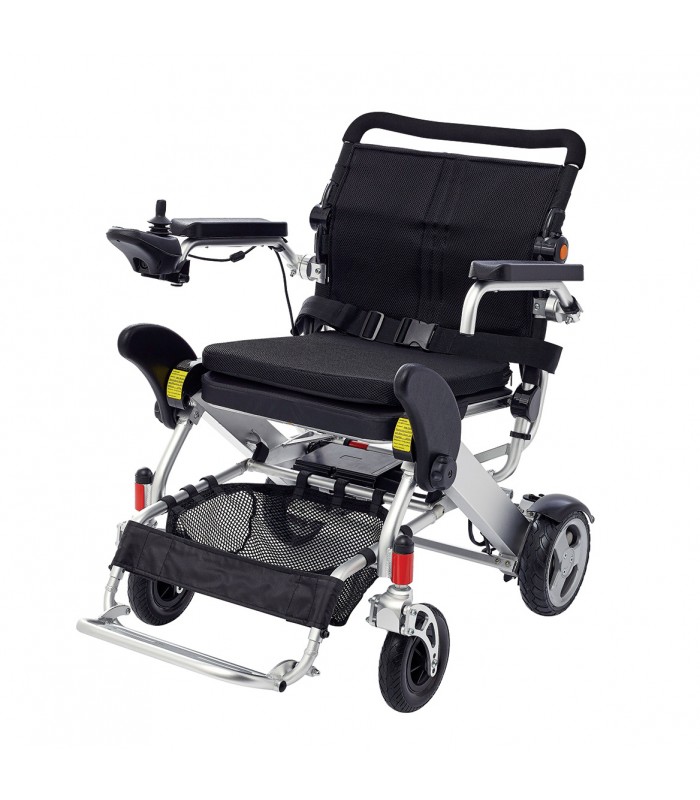 There are built-in lithium batteries A’ class at the sides of the wheelchair giving it the possibility to fold easily within seconds for an easy storage and transport.